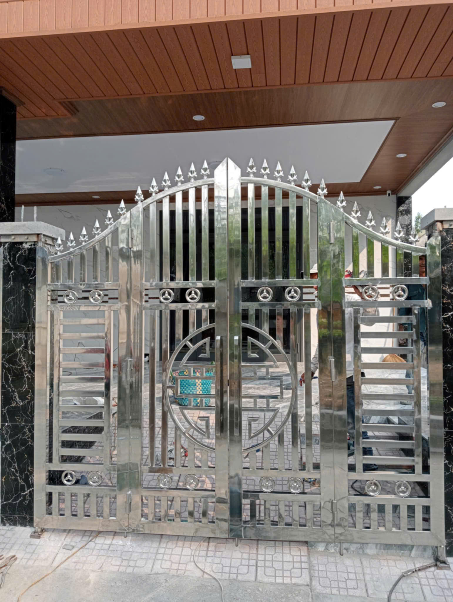 Cổng sắt hoa văn nghệ thuật sang trọng.